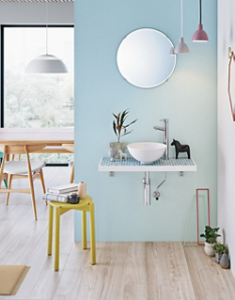 豊富なカラーのカウンターと大型の洗面ボウルを組み合わせて、スタイリッシュで使いやすいカウンター洗面に。