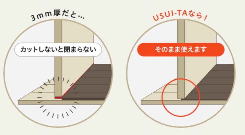 USUI-TAは薄型1.5mmなのでドアの下部をカットせず、貼るだけでOK!