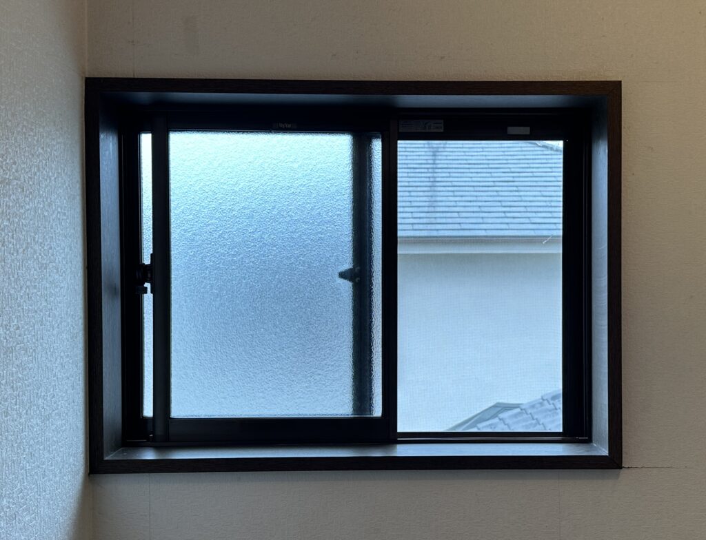 こちらは2階の洗面所にある窓です。2階は得に冷えや暑さが出てきてしまうので、ここにも内窓を設置していきます。