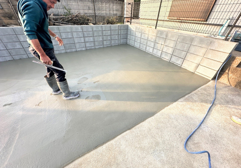 もともと配管が埋まっていたところにコンクリートを流し、下地をしっかりと作ります。