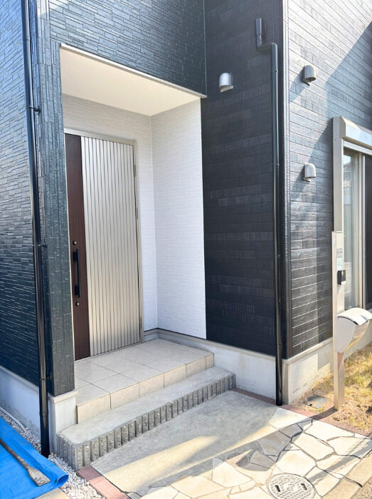 • もともとアプローチがある部分に柱を立てたので、タイルにヒビや傷がつかないよう職人さんが丁寧に施工してくださいました。