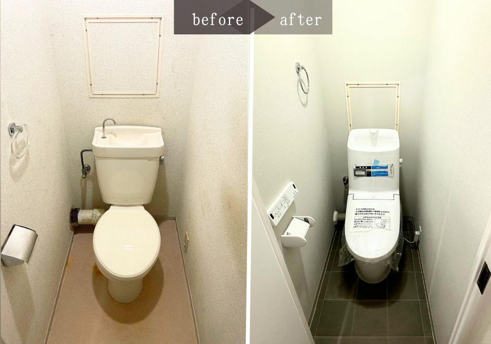 • トイレ                       施工前は節水機能やウォシュレットもないノーマルタイプのトイレでしたので、¨LIXILのアメージュシャワートイレ一体型¨を採用しました。節水やお掃除機能も付いており、快適性がアップしました。                ※補助金対象