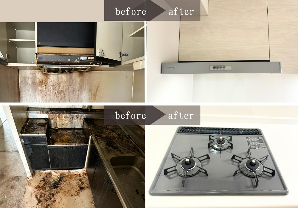 • レンジフード・コンロ(施工前後)            レンジフードやコンロは補助金対象なので、是非リフォームで対象商品を設置することをお勧めしたいです。    ※補助金対象