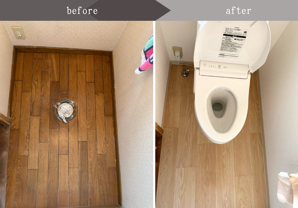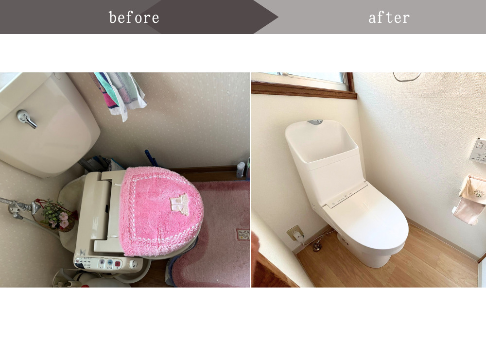 床やクロスも張り替えて、便器だけでなくトイレ全体がお手入れしやすくなりました。水回りが綺麗になるととても快適になります。