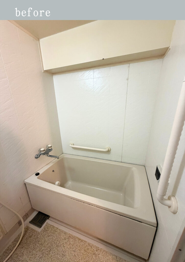 浴室 施行前 水栓の使い勝手も悪く、冬も寒い浴室となっていました。暖かく快適な浴室となるようリフォームを行っていきます。