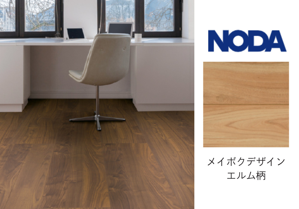 ■フロア/NODAメイボクデザイン カラー:エルム柄 特徴は、①ワックス不要②汚れや傷に強い③抗菌対策④床暖や電気カーペットにも対応可能⑤防音 です。小さなお子様がいるご家庭でも安心して使える商品となっています。