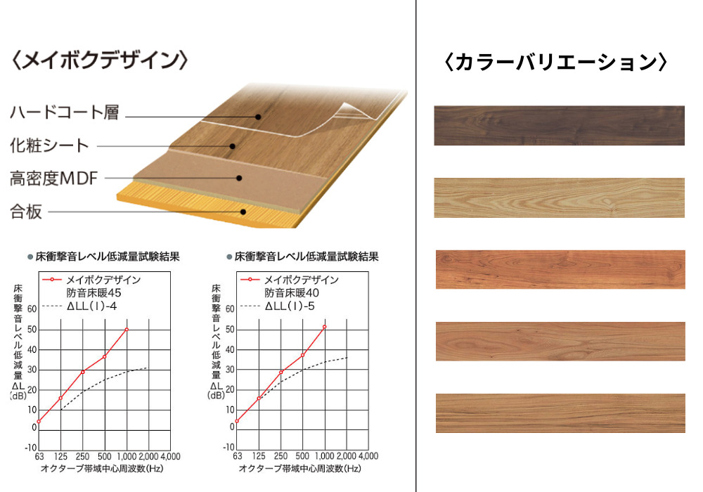 マンションでは音も気になるところですよね。床の衝撃音レベルも軽減されることでストレスなく生活もできます。カラーや柄のバリエーションも豊富なので、お部屋の雰囲気に合わせてチョイス可です◎