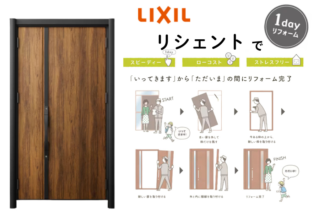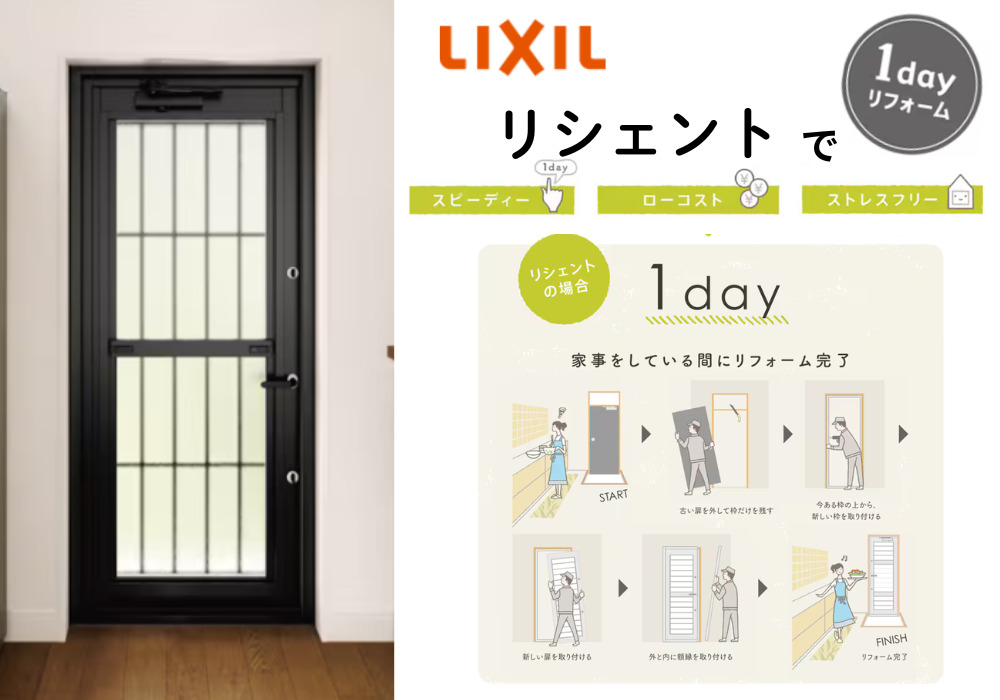 断熱性能・防犯に優れ、カラーやタイプが様々なリシェントは、自宅に合わせてオーダーできるところが大きなメリットです。施工も1日で完了できるのは嬉しいポイントですね◎                  ※2025年先進的窓リノベ補助金対象