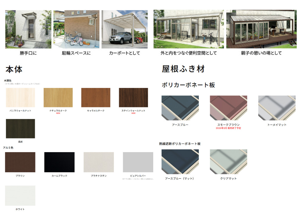 本体:プラチナステン / ポリカ屋根:アースブルー