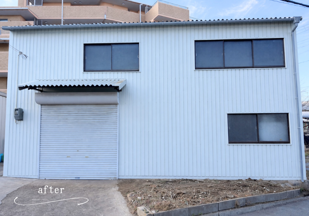 施行前は黒ずんでいた工場も、施工後はとても綺麗に生まれ変わりました。