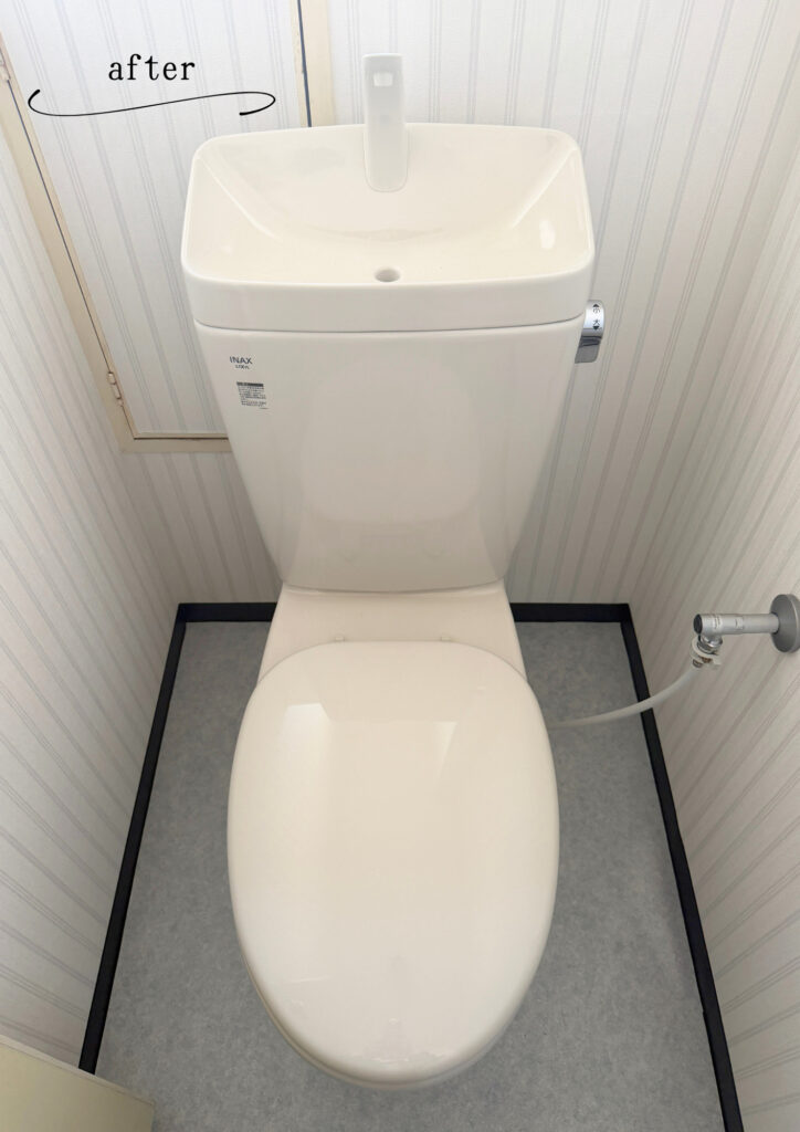 一体型トイレのためとてもお掃除がしやすくなり、節水機能も付いているためお財布にも優しく、座ってもヒヤッとする不快感がなくなりました。