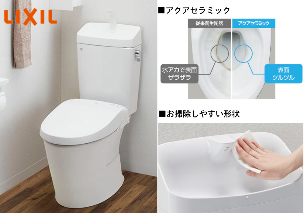 水となじみやすいアクアセラミックは、便器洗浄やお掃除するたびに汚物を浮かせて洗い流すので、お掃除ラクラクです。