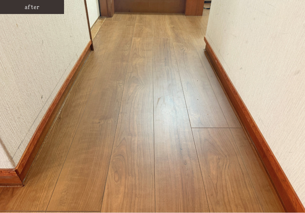 • 廊下すべてのフローリングを施工佐褪せていただきました。