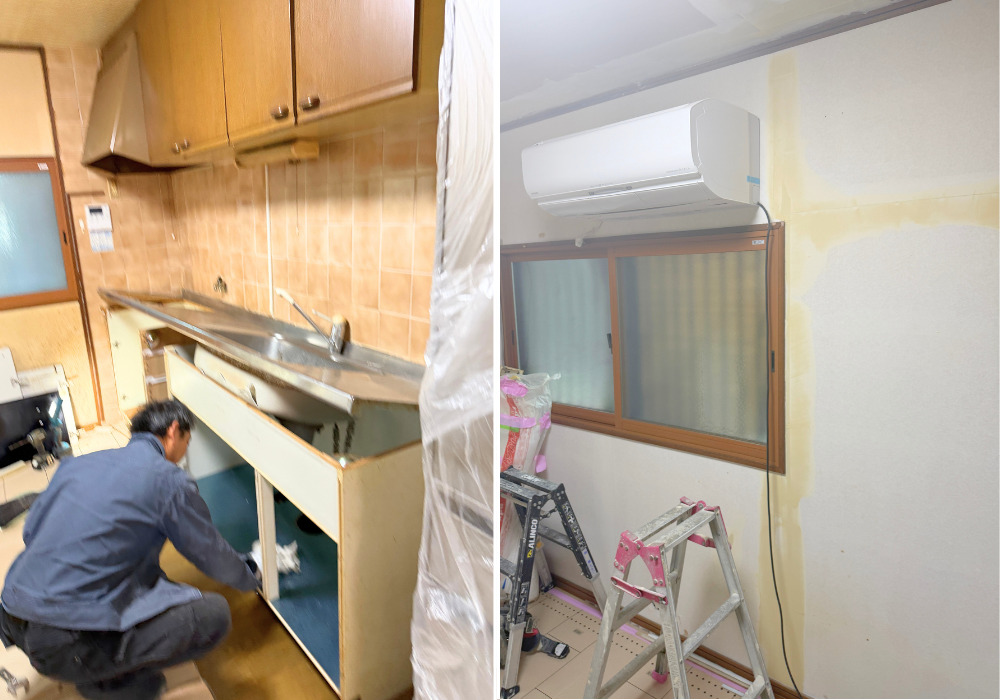 既存のキッチンを職人さんが丁寧に解体していきます。
