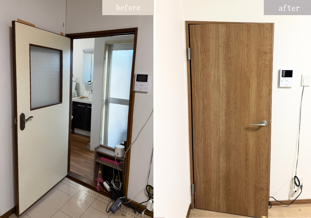 施工後こちらのお客様はワンちゃんを飼っておられるので、吠えても周りに聞こえにくいようPanasonicの遮音ドアを採用しました。ドアを閉めるとほとんど鳴き声などが外に漏れないようになり、喜んでいただきました。